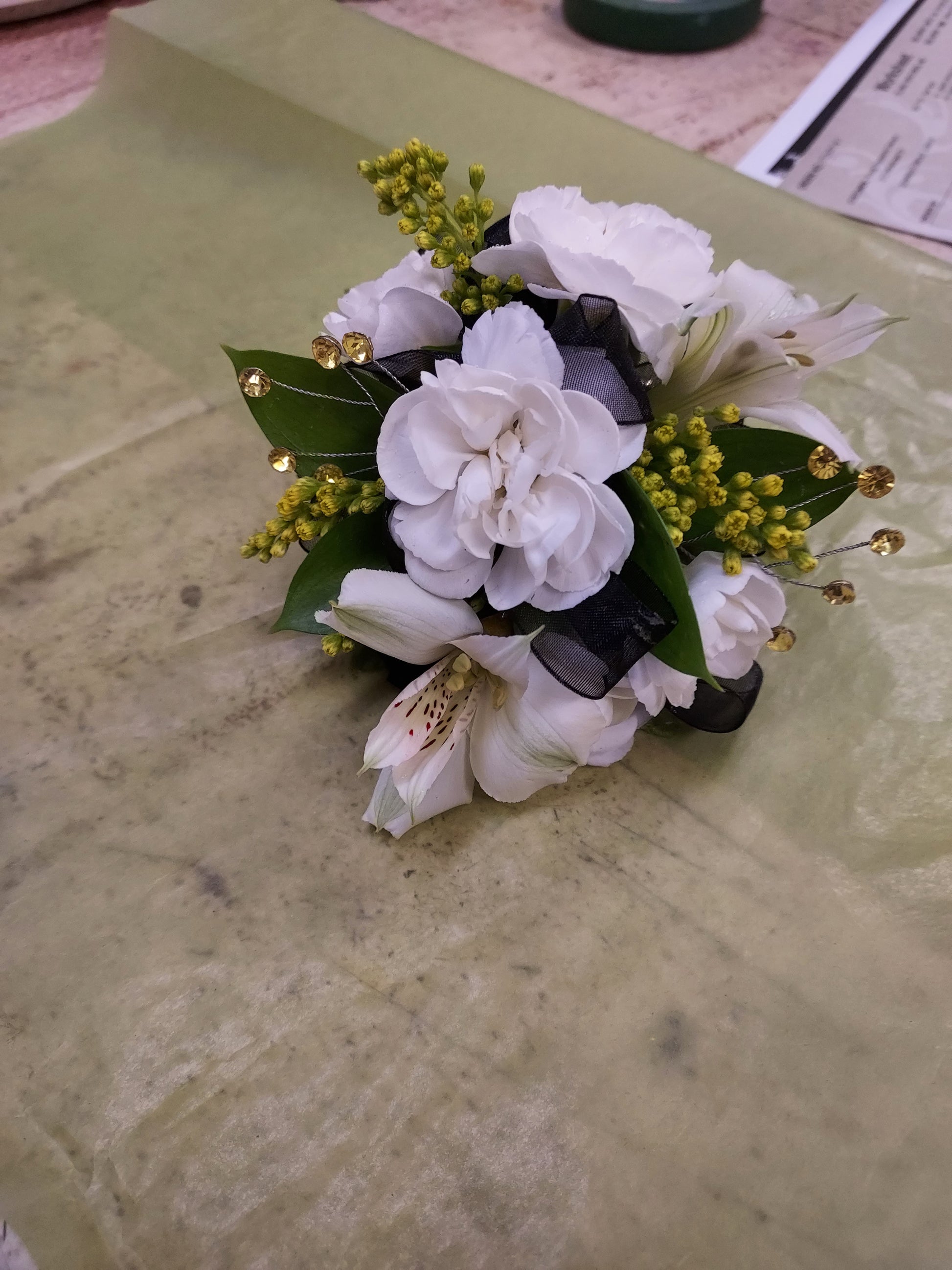 comes with rhinestone wristlet, ribbon, bling, flowers, and filler